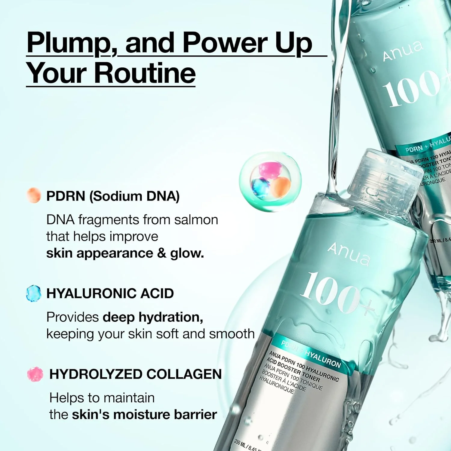 Powered by PDRN (Polydeoxyribonucleotide) and 100% Hyaluronic Acid complex, this advanced toner deeply replenishes hydration while supporting skin regeneration and elasticity.