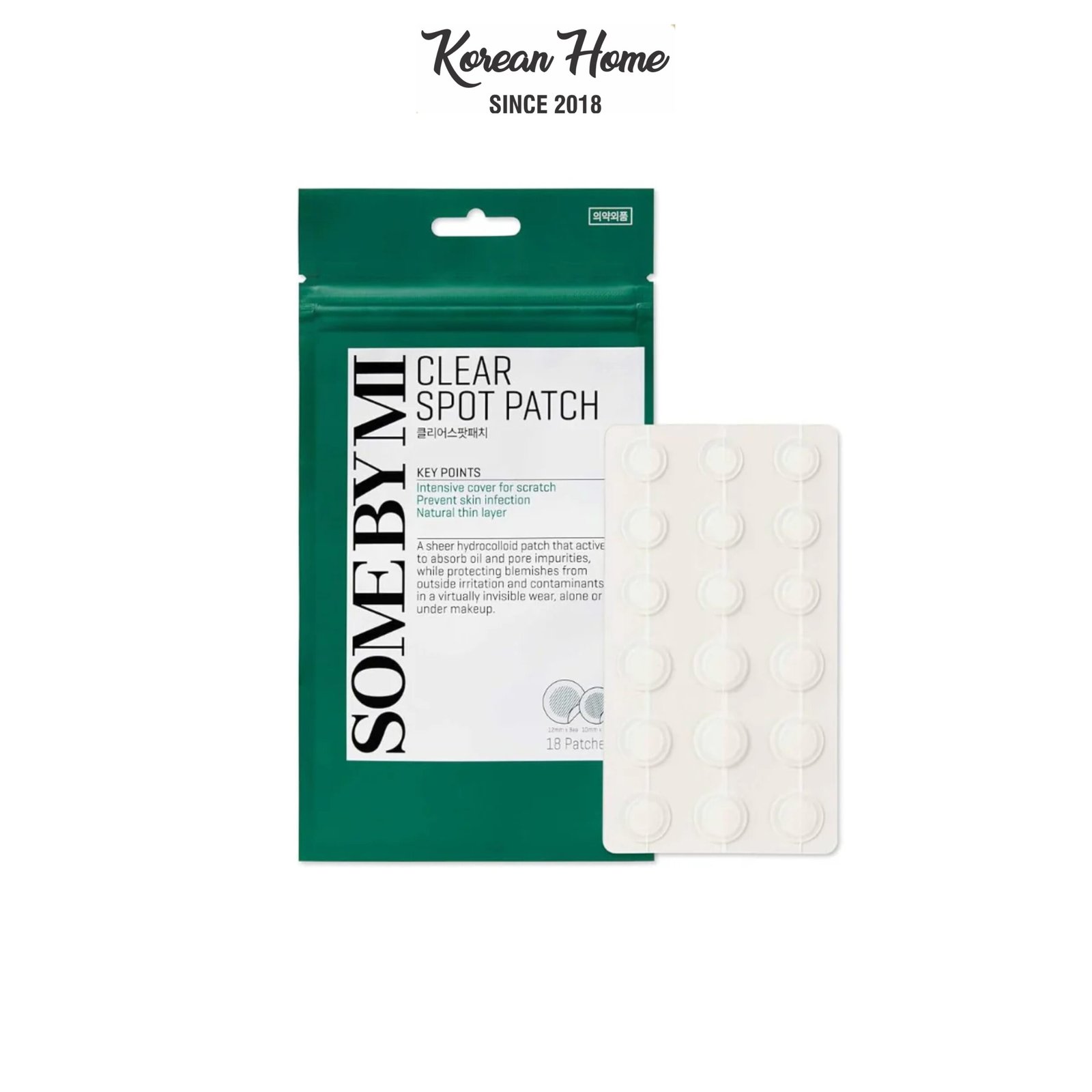 SOME BY MI Clear Spot Patch is a thin, hydrocolloid acne patch designed to protect blemishes, absorb impurities, and promote faster healing.