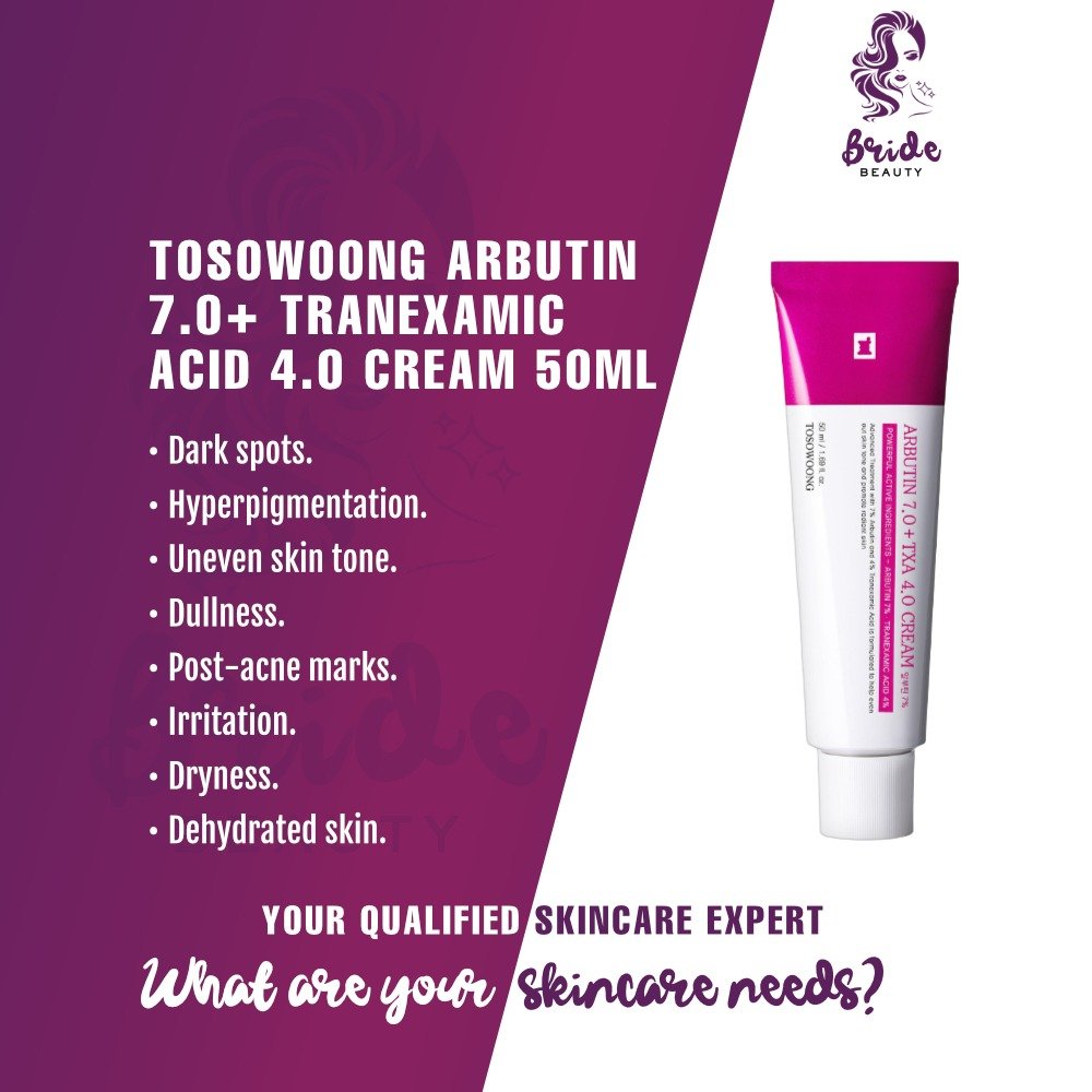 TOSOWOONG Arbutin 7% + Tranexamic Acid 4% Cream is a high-performance brightening treatment formulated to visibly reduce dark spots, pigmentation, and uneven skin tone. With two proven tone-correcting actives in powerful concentrations, this cream targets stubborn discoloration while keeping skin hydrated and balanced.